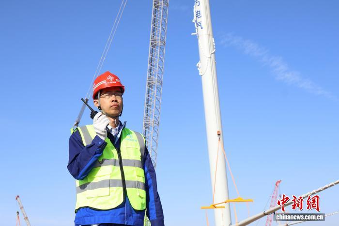 段穩(wěn)盼在新疆木壘縣風力發(fā)電項目施工現(xiàn)場指揮作業(yè)。中交一航局供圖