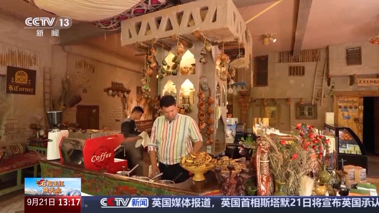 麥爾丹·阿布力提,是一家咖啡店的店主,他的咖啡店已經(jīng)開了9個年頭。麥爾丹從小在喀什長大,2016年隨著古城改造完成,他萌生了在古城開一家咖啡店的想法,如何裝飾自己的咖啡店,麥爾丹下了一番功夫。在古城生活中的一些老物件被他巧妙地利用起來。