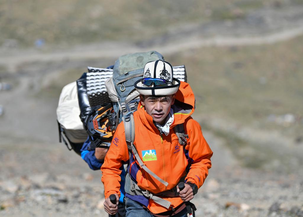 柯爾克孜族牧民塔西巴伊·加尼拜克服務登山隊。新華社記者 胡虎虎 攝