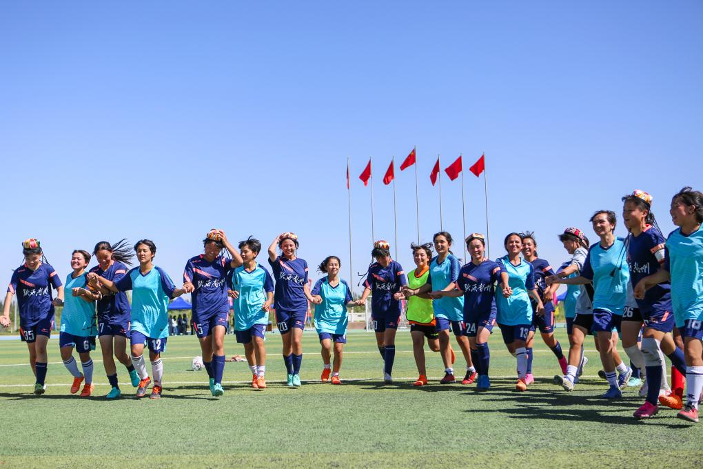 2023年8月,貴州和新疆的小選手們在友誼賽后拉起手向觀眾致意。新華社記者 郝昭 攝