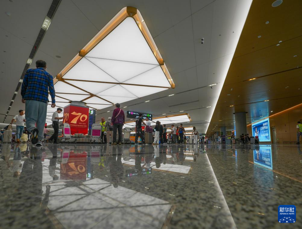 9月15日,旅客在烏魯木齊天山國際機場等待提取行李。新華社記者 陳朔 攝