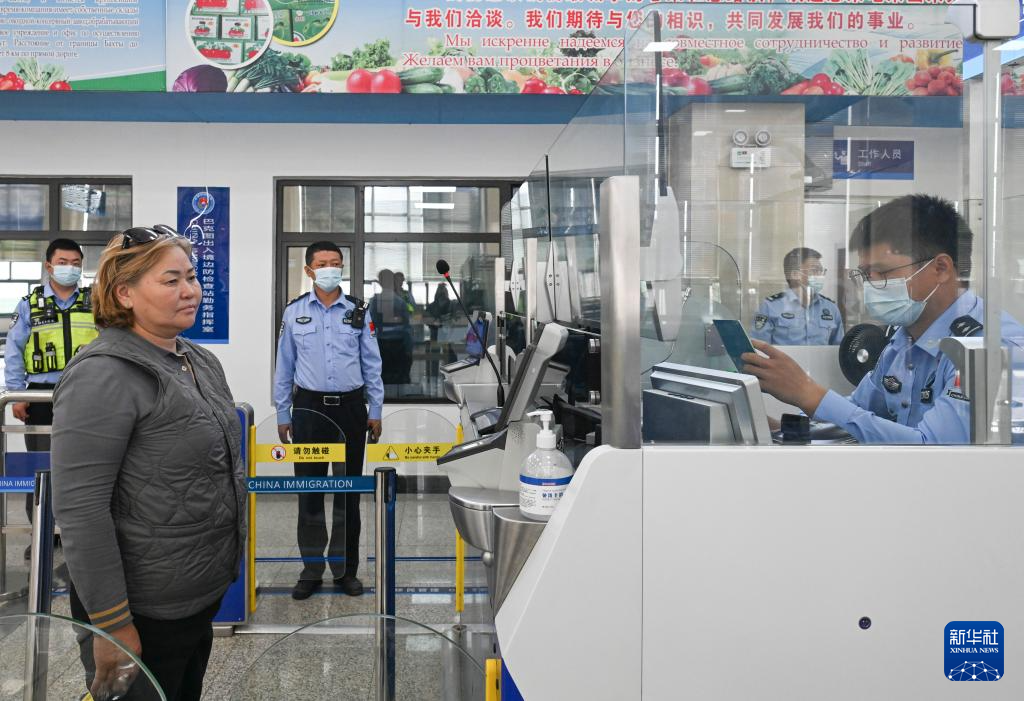 9月17日,游客從位于新疆塔城地區(qū)的巴克圖口岸出境前往哈薩克斯坦旅游。新華社記者 陳朔 攝