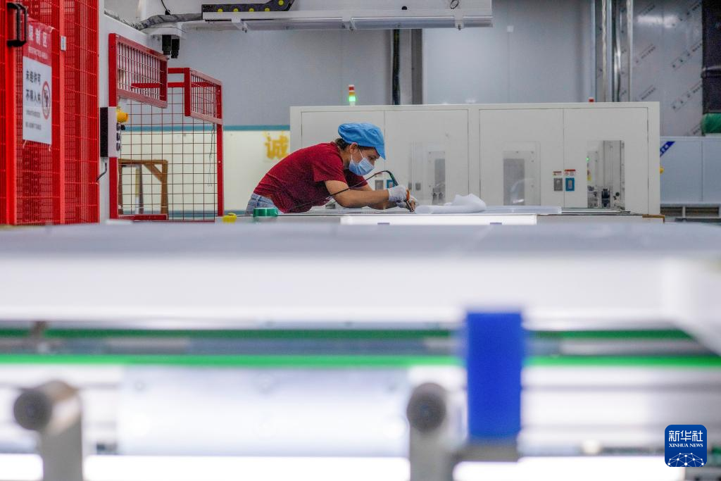 9月22日,工人在新疆巴音郭楞蒙古自治州若羌縣的國晟企誠新能源有限公司對光伏電池片進(jìn)行疊層返修。新華社記者 江文耀 攝