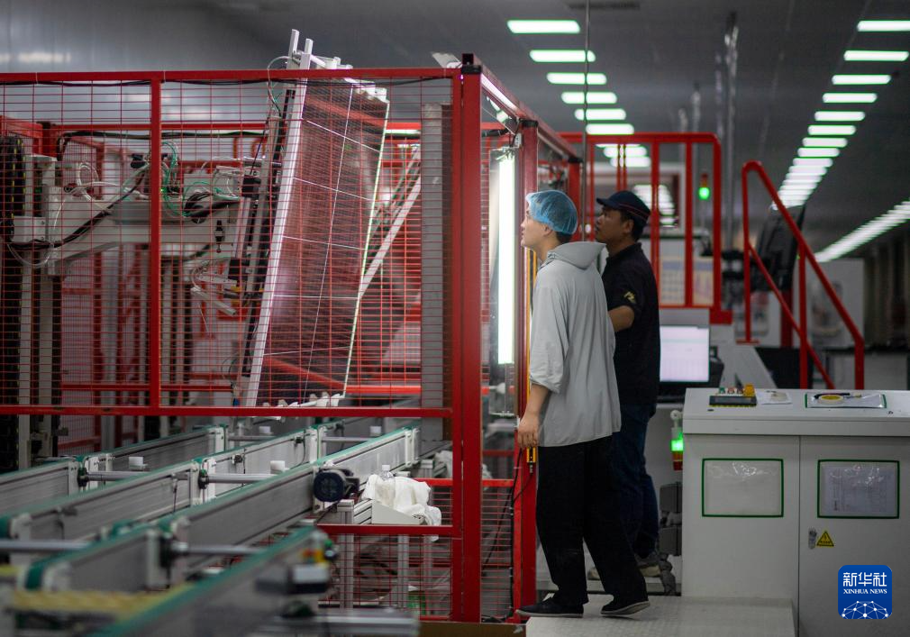 9月22日,在新疆巴音郭楞蒙古自治州若羌縣的國晟企誠新能源有限公司,全自動(dòng)劃片機(jī)在切割光伏電池片。新華社記者 陳朔 攝