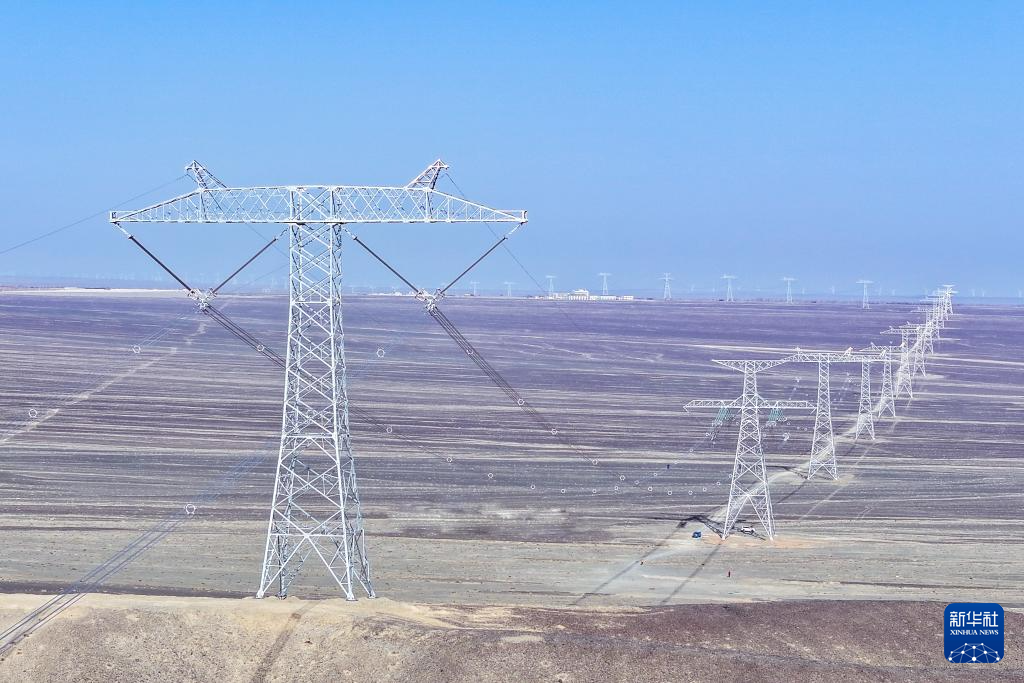 矗立在戈壁上的±800千伏哈密—重慶特高壓直流輸電線路工程(4月8日攝,無人機(jī)照片)。新華社發(fā)(張靈軍 攝)