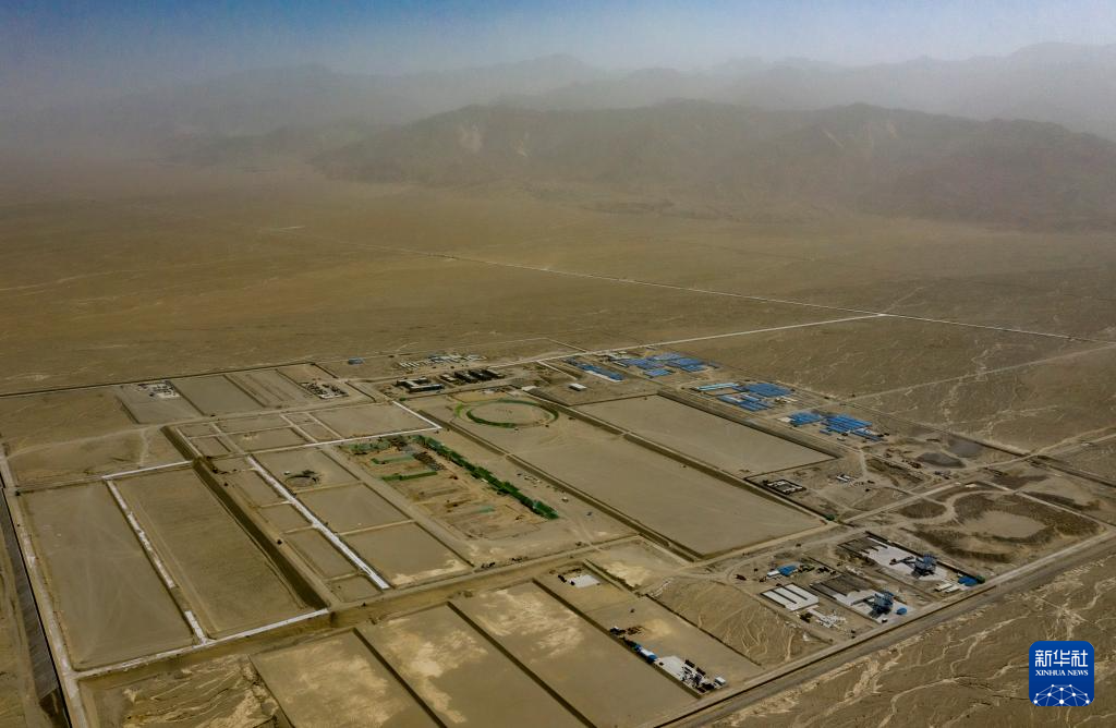 9月22日在新疆巴音郭楞蒙古自治州若羌縣拍攝的三峽集團(tuán)“疆電外送”第四通道電源項(xiàng)目施工現(xiàn)場(無人機(jī)照片)。新華社記者 陳朔 攝