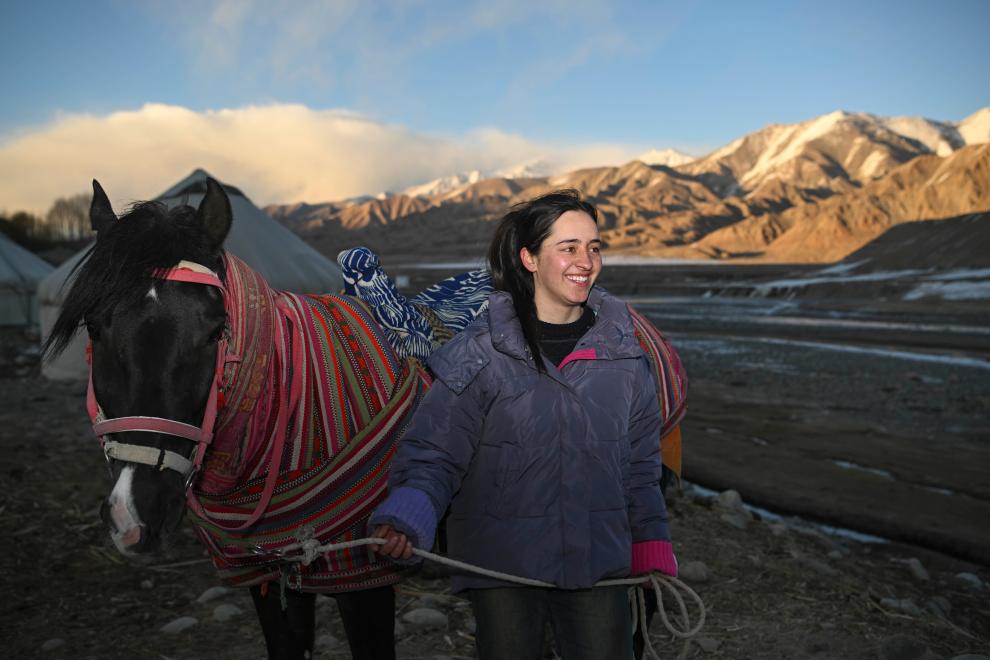 父輩把牧鞭傳到手中,巴哈提和勤懇的丈夫哈布得拉什么·努素普別克日復(fù)一日勞作,家底逐漸殷實。牛羊馬匹漸多,夫妻倆把石塊和牛糞壘起來的棚圈擴了又擴。