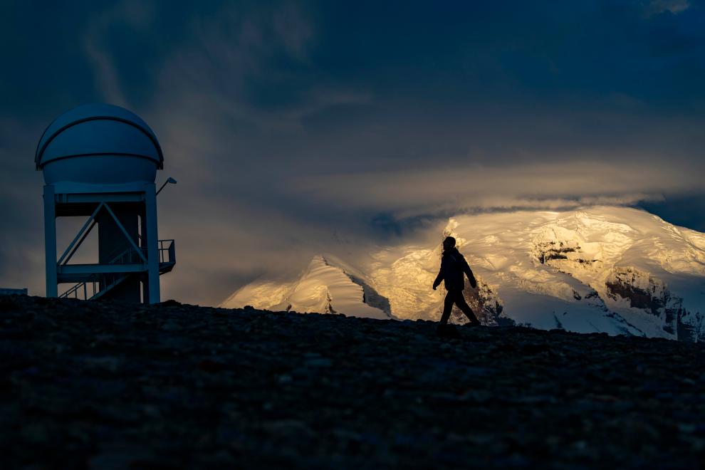 天文科技工作者馮國杰在中國科學(xué)院新疆天文臺慕士塔格觀測站內(nèi)巡查(2020年6月15日攝)。