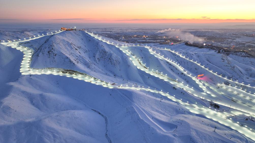 黃昏時分的將軍山國際滑雪度假區(qū)(2025年1月24日攝)。將軍山國際滑雪度假區(qū)在夜間開放多條雪道,以滿足“雪友”多樣化需求。