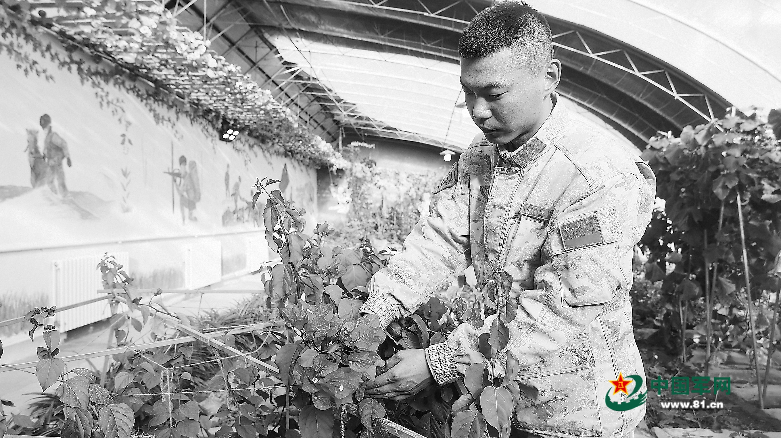 二級(jí)上士孫曉坤是連隊(duì)的種植員,如今四季如春的溫室大棚內(nèi),草莓、橘子、圣女果等各類蔬果,還有月季、三角梅等十幾種綠植,都是他細(xì)心呵護(hù)的“寶貝”。