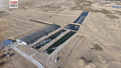 在且末縣水產(chǎn)養(yǎng)殖基地里,工人們正捕撈烏魚、沙錐魚等海產(chǎn)。當(dāng)?shù)赝ㄟ^鹽堿水還原海水技術(shù),成功實現(xiàn)沙漠海鮮養(yǎng)殖,規(guī)模達(dá)500畝以上,成活率達(dá)到96%。