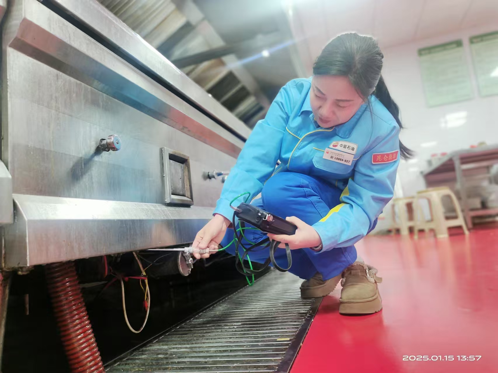 2月10日,中國石油天然氣銷售新疆哈密公司石油基地民用氣服務(wù)站安檢工嚴小琴,正在對石油基地高級中學食堂燃氣設(shè)施進行檢查。